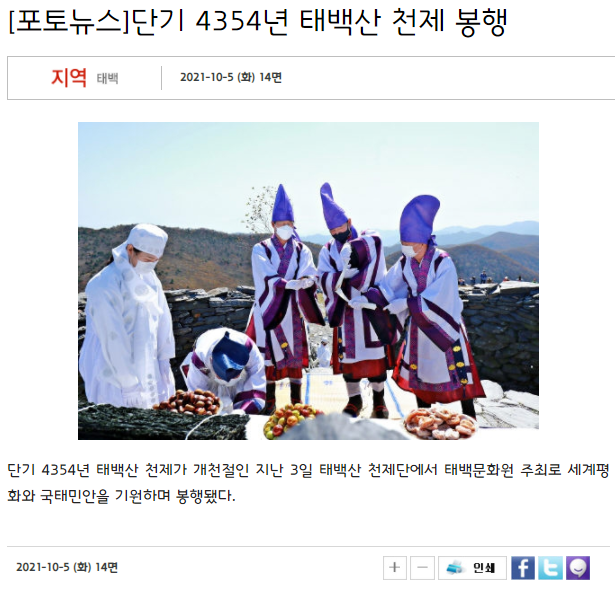 [포토뉴스] 단기 4354년 태백산 천제 봉행 태백문화원 2022-02-22 09:31:49 view : 1155 목록 이전글태백산 천제 문화체육관광부 '로컬100'선정2023.10.31 다음글'하늘이 열린 날' 개천절...태백산 천제 봉행2020.10.08